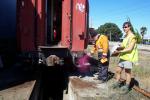 Here you can see Peter McCallum from the Taieri Gorge Railway showing Mike a rotten step.